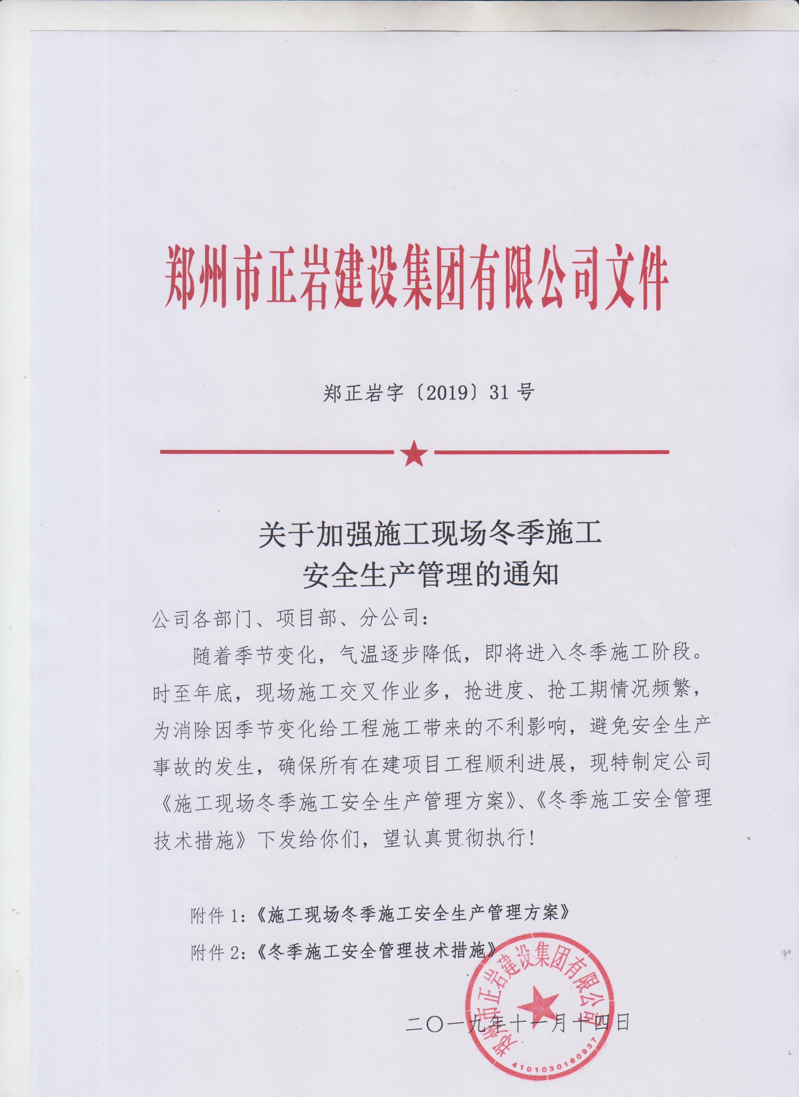 郑州市东莞贵龙饰品贸易有限公司关于加强施工现场冬季施工安全生产管理的通知