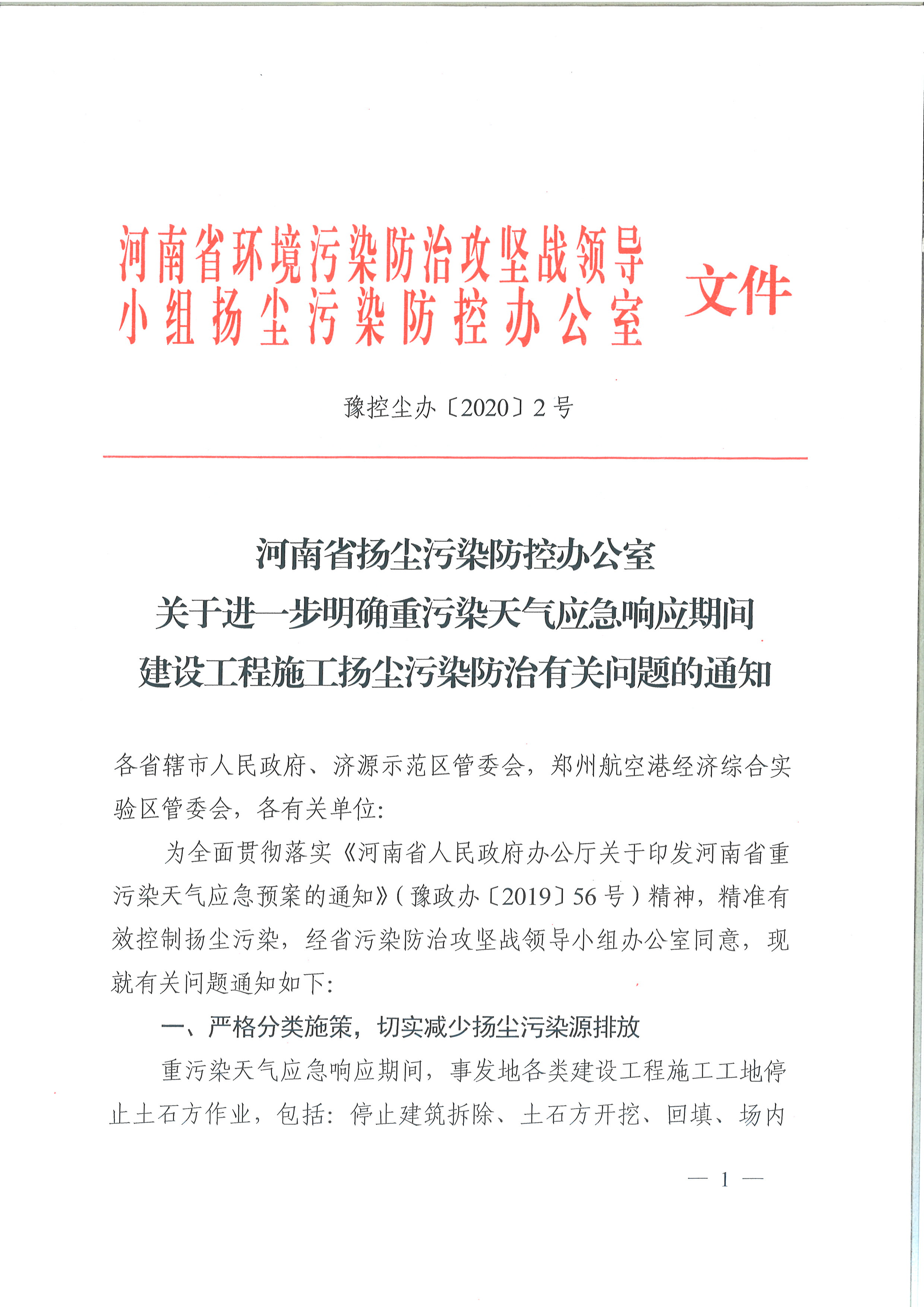 河南省扬尘污染防控办公室关于进一步明确重污染天气应急响应期间建设工程施工扬尘污染防