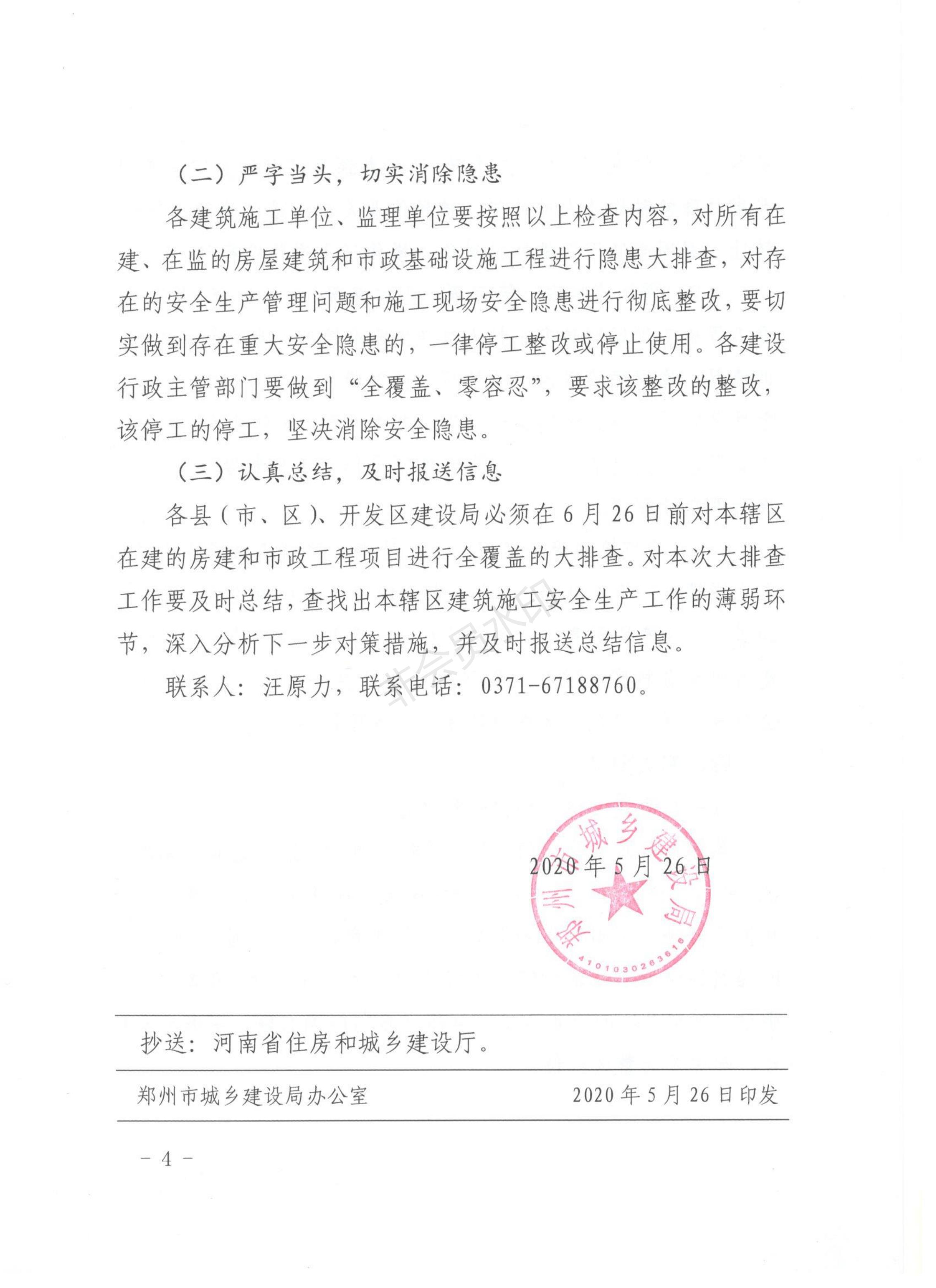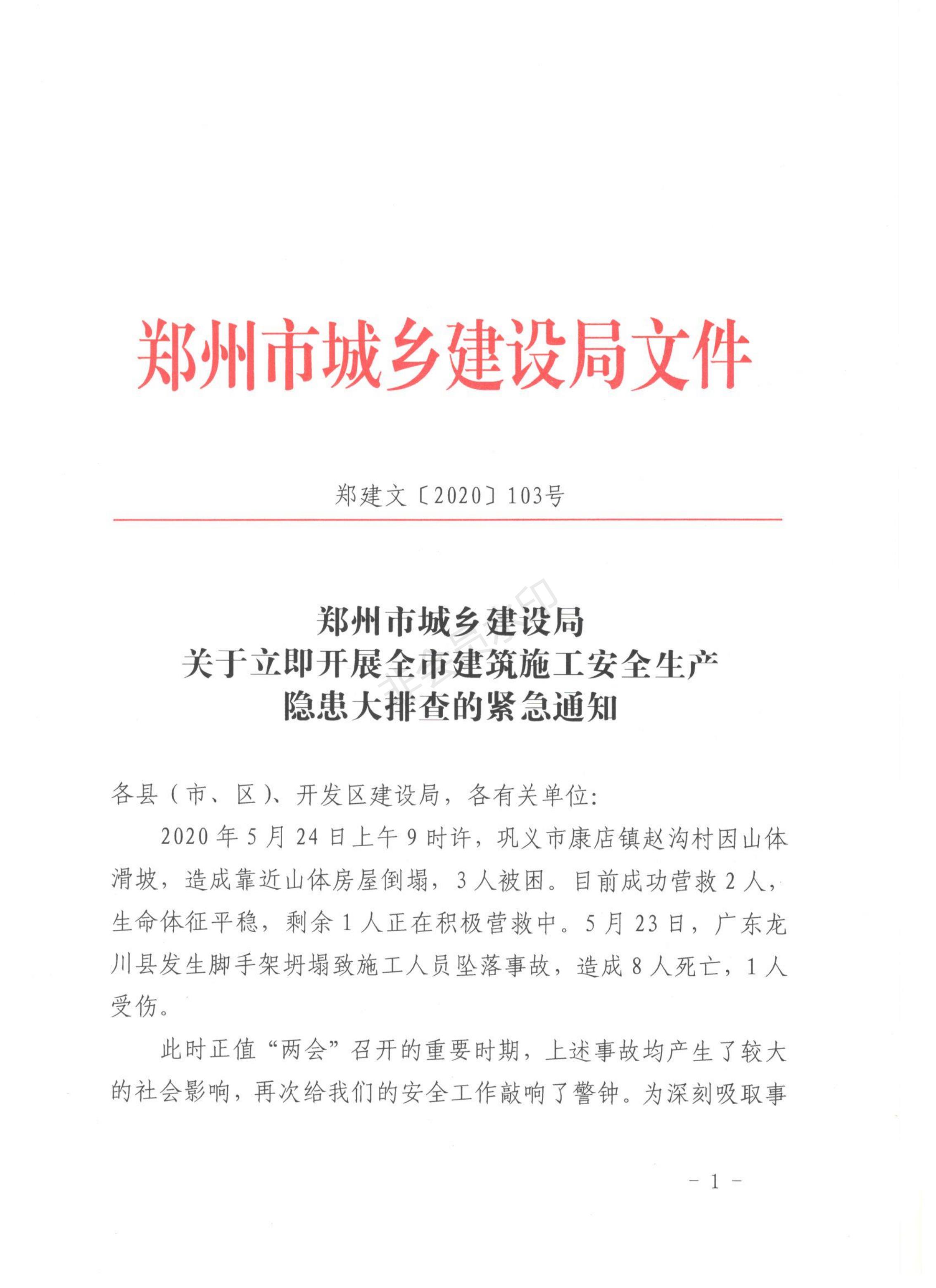 郑州市城乡建设局关于立即开展全市建筑施工安全生产隐患大排查的紧急通知