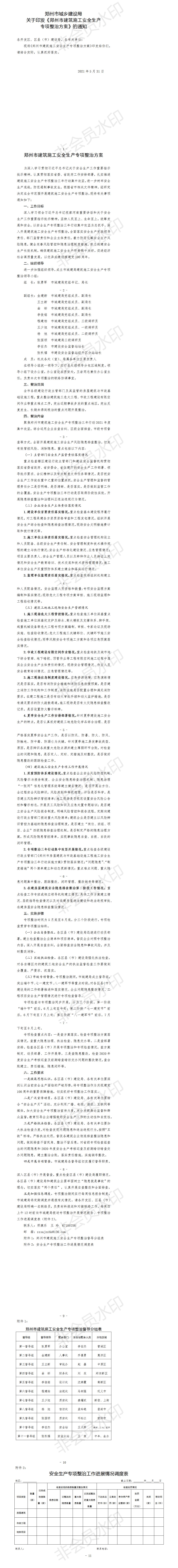 郑州市城乡建设局 关于印发《郑州市建筑施工安全生产 专项整治方案》的通知