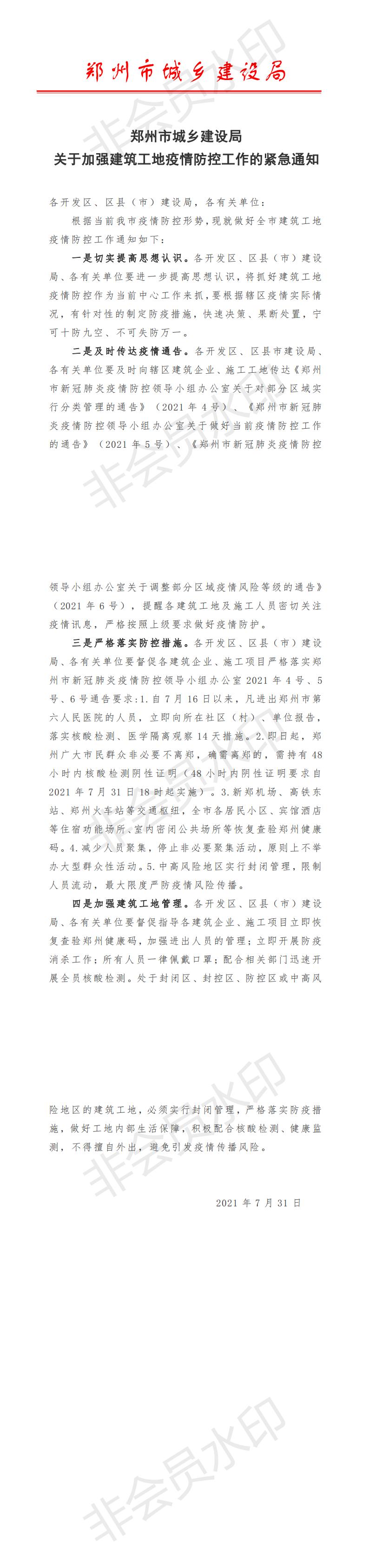 郑州市城乡建设局关于加强建筑工地疫情防控工作的紧急通知